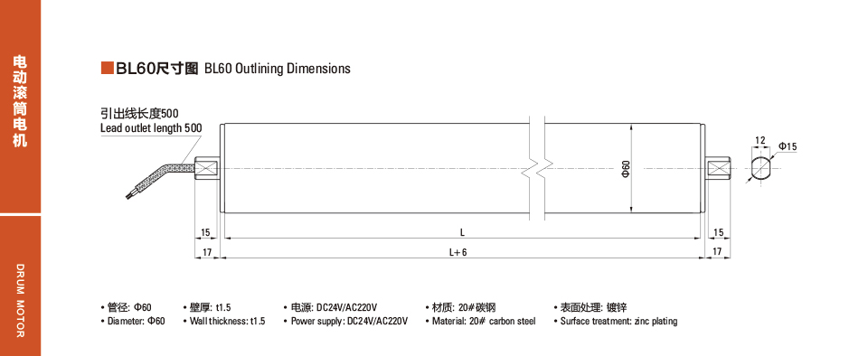 名稱(chēng)BL60直流電動(dòng)滾筒電機(jī)